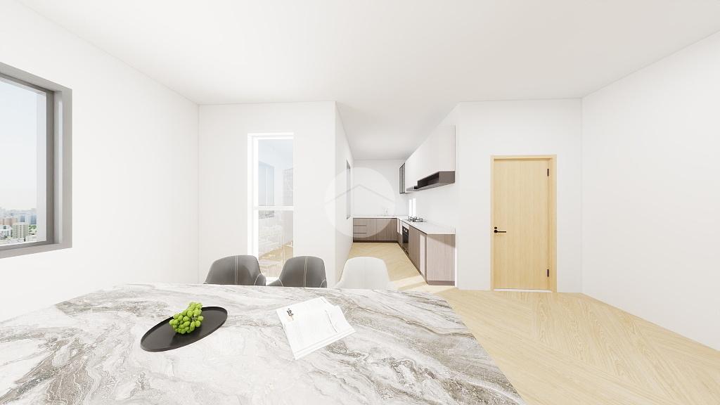 L'immobile, sviluppato su un unico livello abitativo e privo di barriere architettoniche, presenta l'ingresso su disimpegno, tinello e cucinino da cui si può accedere al cortile condominiale, due ampie camere matrimoniali di cui una con sfogo sul balcone e bagno finestrato dotato di box doccia.