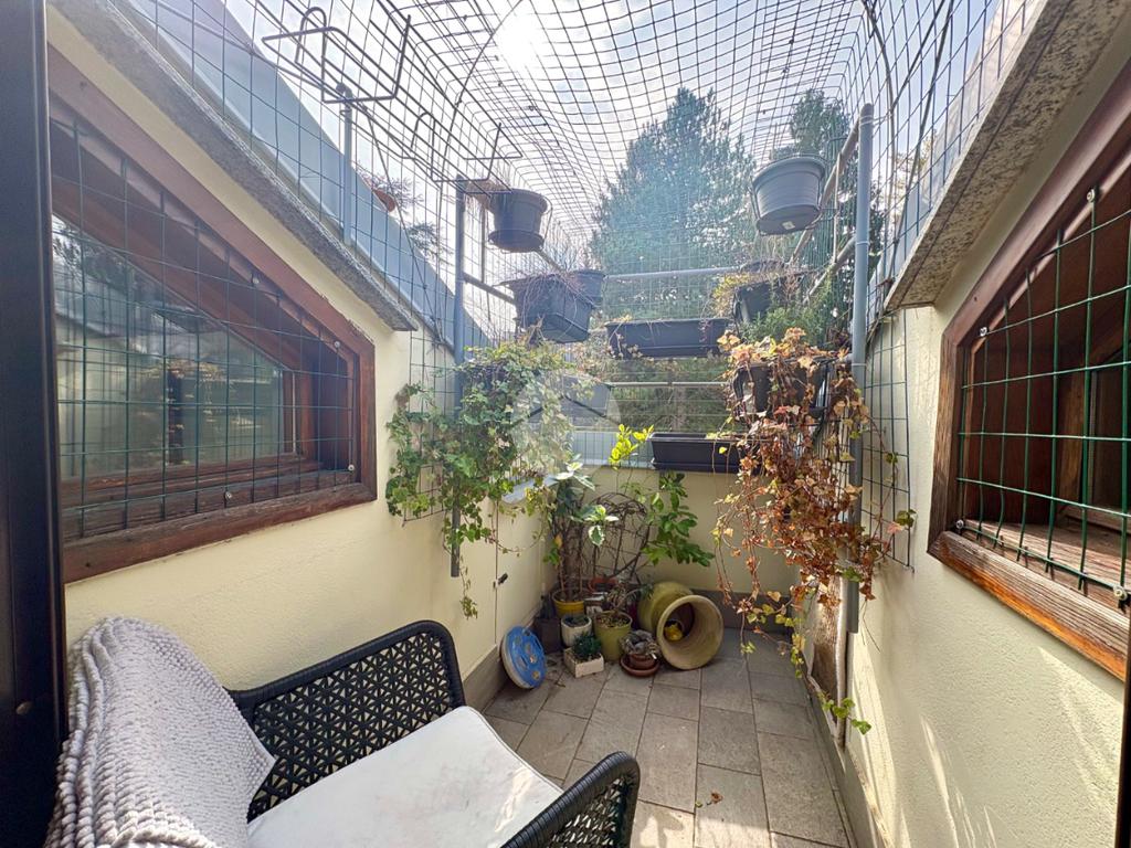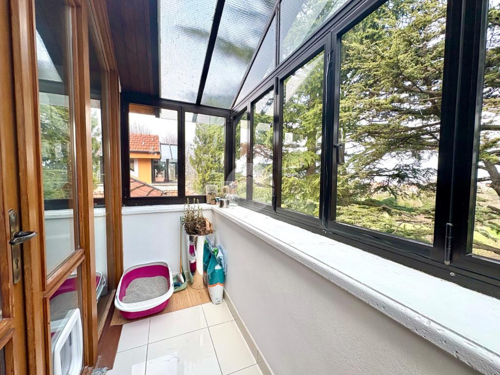 Punto di forza dell’abitazione sono gli spazi esterni: un balcone verandato, sfruttabile in ogni stagione, e un piccolo terrazzino riservato, ideale per godersi momenti di relax all’aria aperta con vista sul verde circostante.