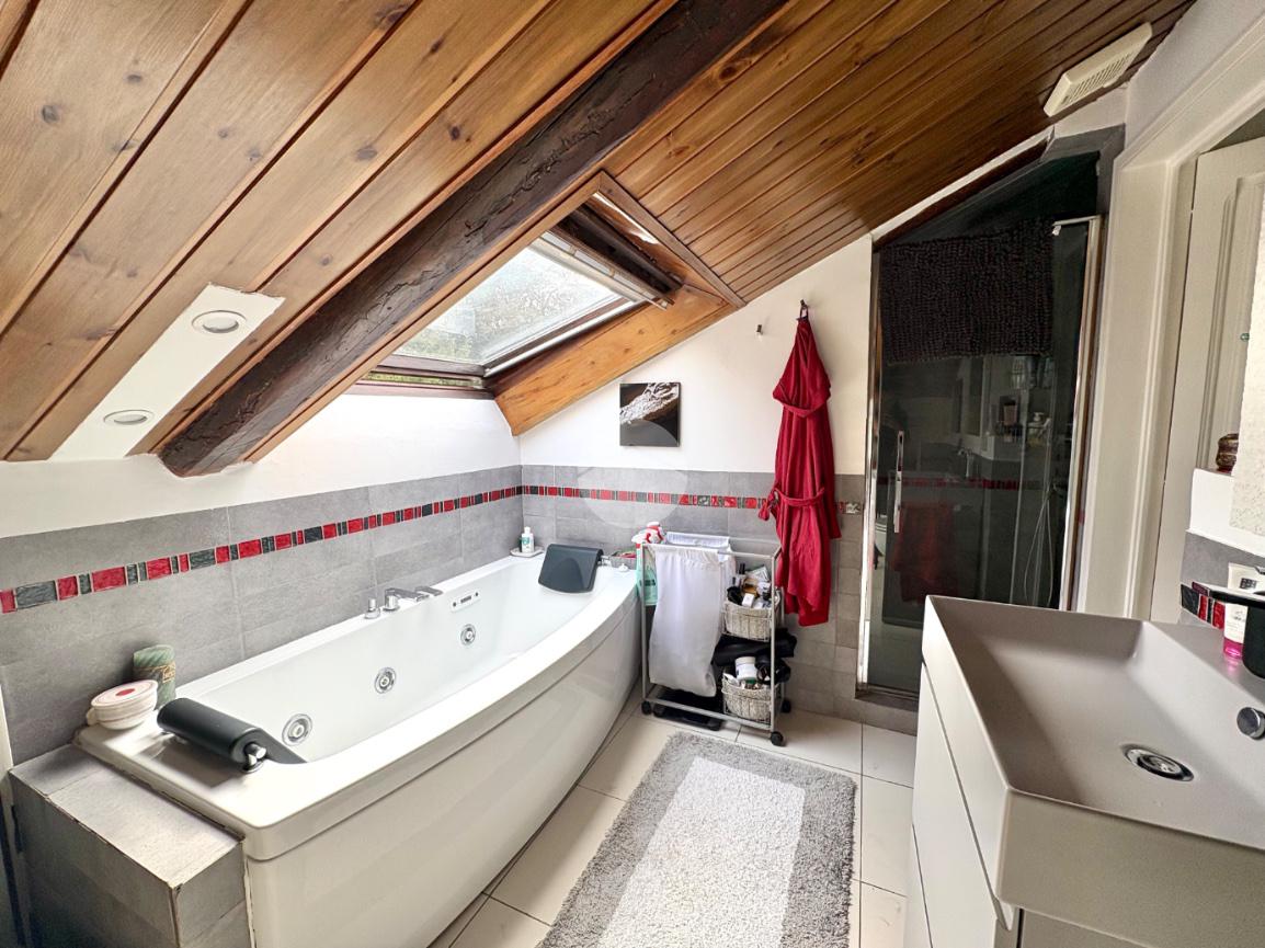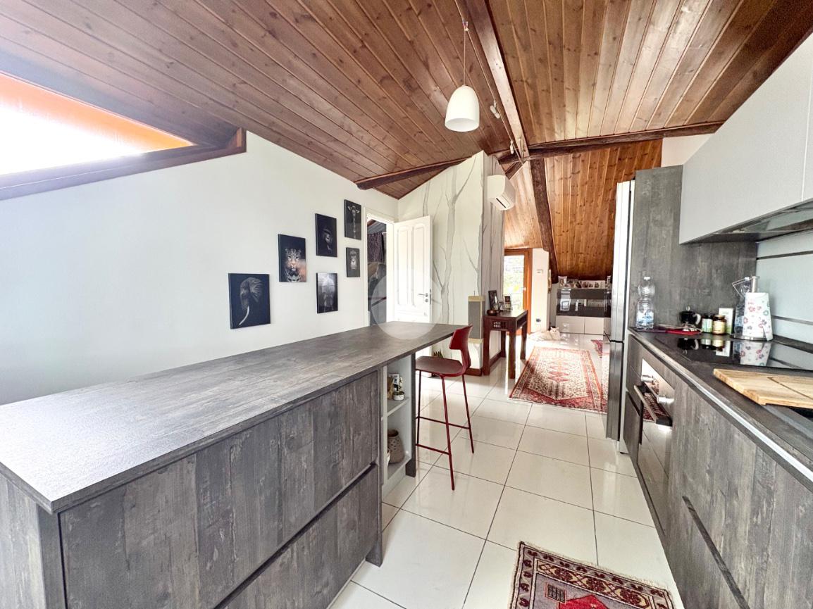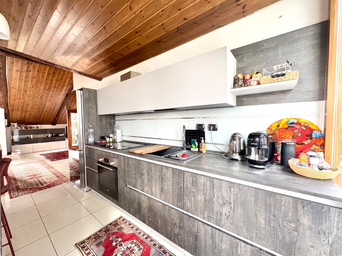 L’immobile si distingue per la luminosità degli ambienti e per la distribuzione funzionale degli spazi: l’ingresso conduce a un accogliente soggiorno con cucina a vista, ideale per vivere momenti di convivialità in un’atmosfera calda e rilassante. La zona notte comprende una spaziosa camera matrimoniale e uno studio versatile, perfetto come area hobby o ambiente smart working. Completa il piano un bagno ben rifinito dotato di box doccia e vasca idromassaggio.
