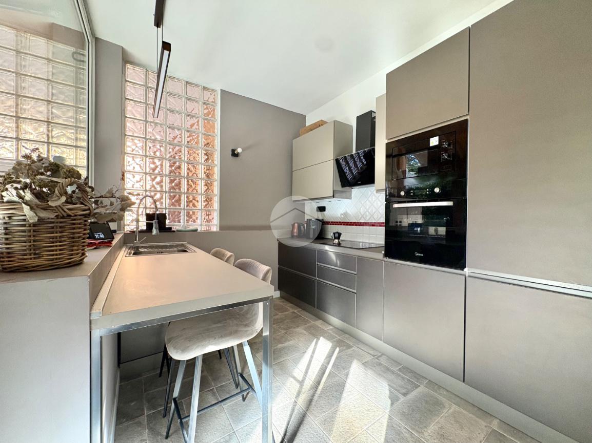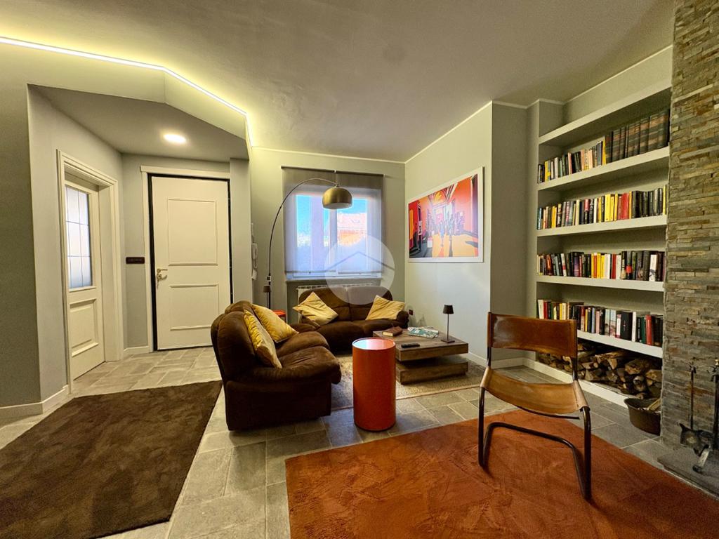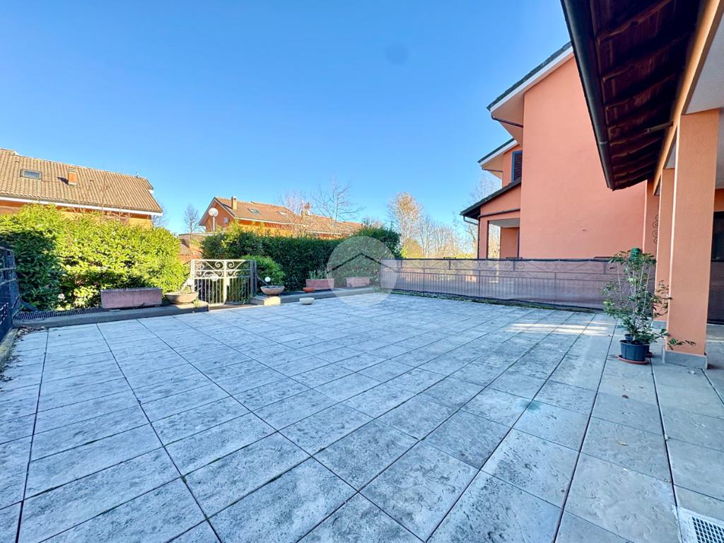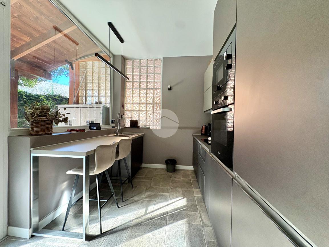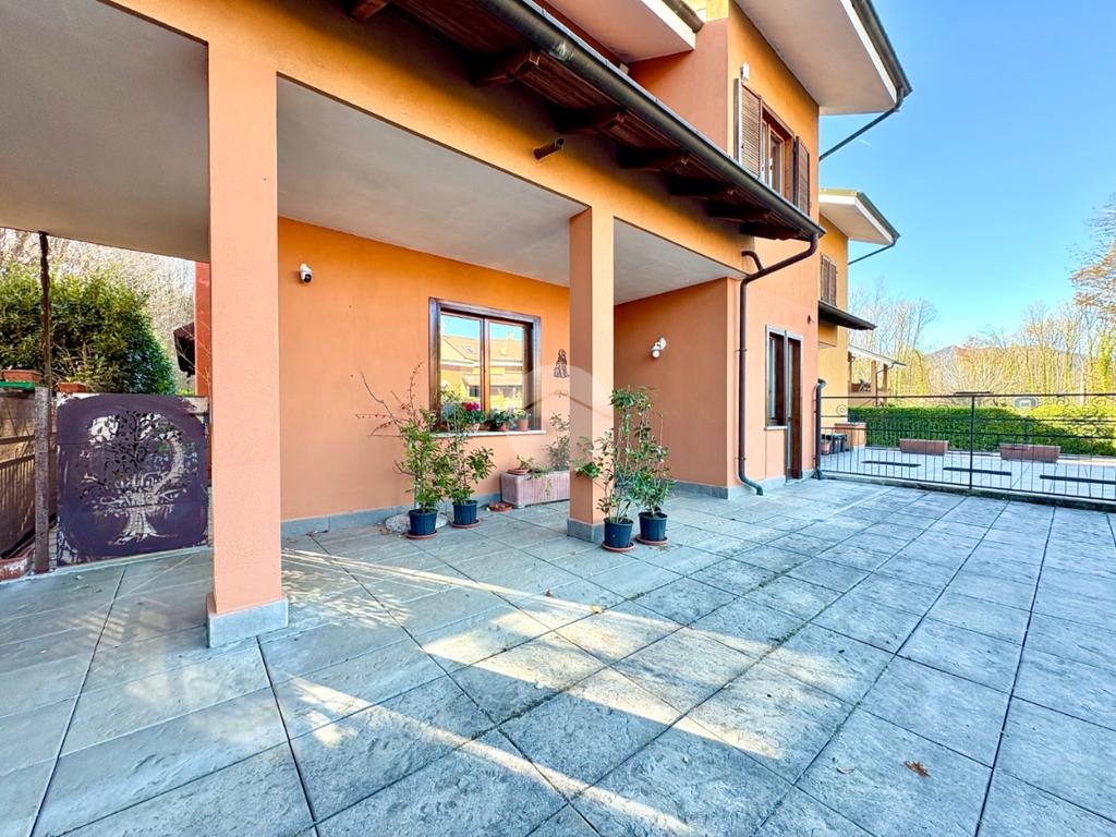 L'ingresso avviene tramite uno spazioso cortile privato che introduce alla zona giorno, situata al piano terra e composta da soggiorno, studio, un pratico bagno al piano, cucina abitabile caratterizzata da ampie vetrate e con accesso diretto al giardino impreziosito da un portico, perfetto per i momenti di relax all'aperto.