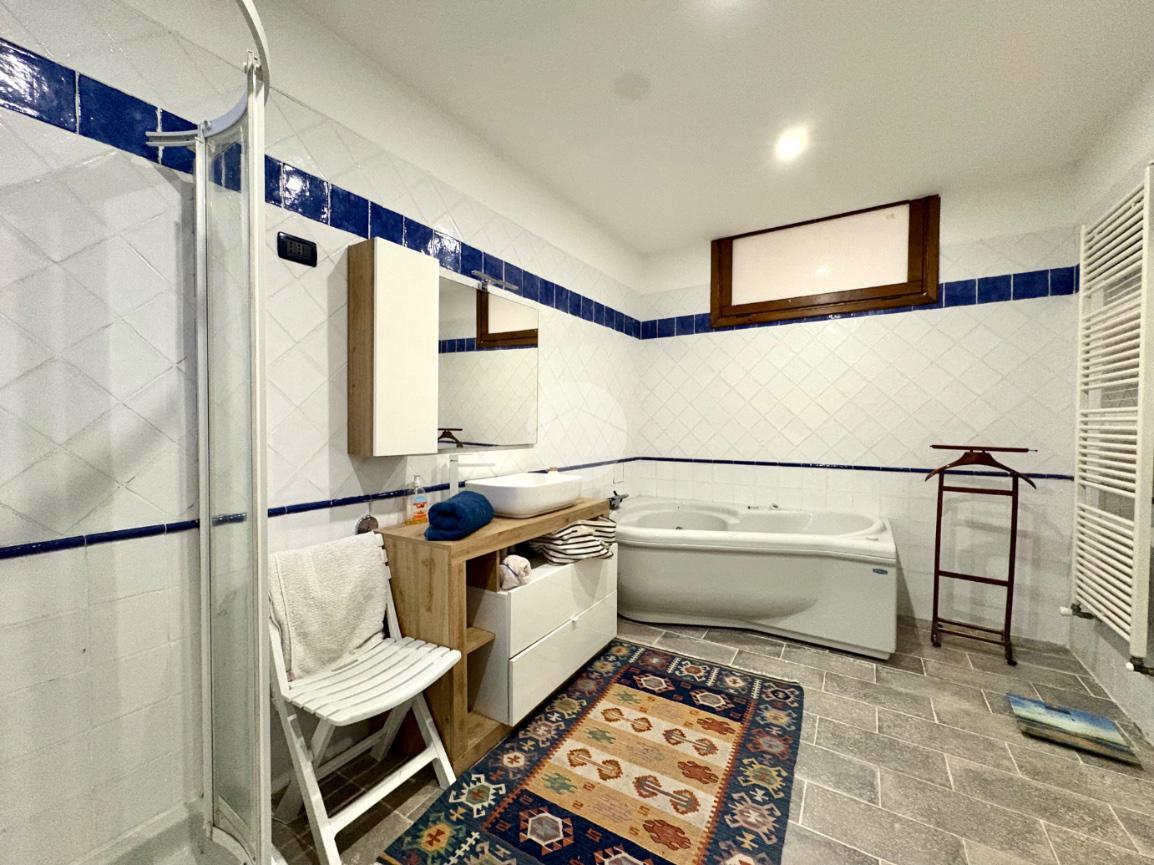 Completa la proprietà il piano interrato dove troviamo una spaziosa taverna, il bagno finestrato sia con vasca idromassaggio che con box doccia, zona lavanderia, cantina/studio e l'accesso al box singolo che garantisce praticità.