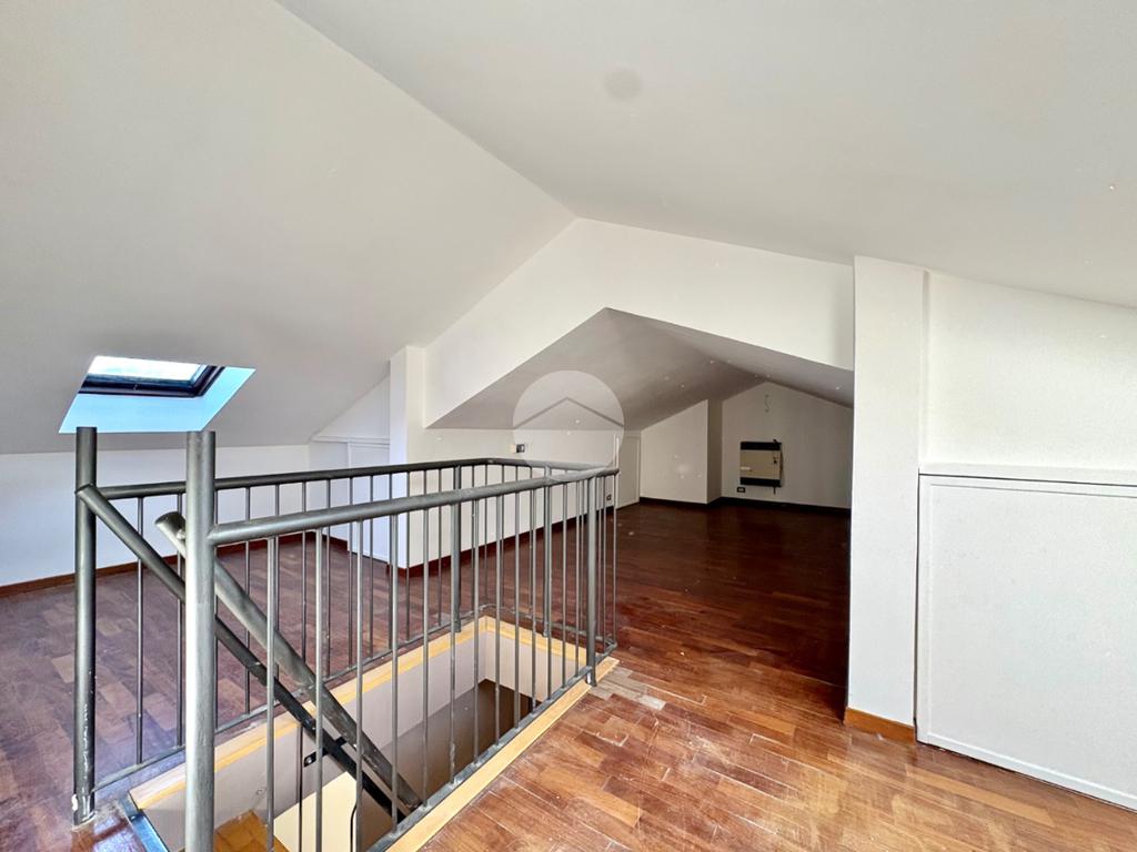 Tramite comoda scala interna si accede al primo piano dove si sviluppa la zona notte composta da due camere, entrambe con sfogo sul balcone, cabina armadi e bagno finestrato dotato di box doccia. Il piano mansardato, caratterizzato da un unico ambiente spazioso, offre grande versatilità ed è ideale per molteplici utilizzi.