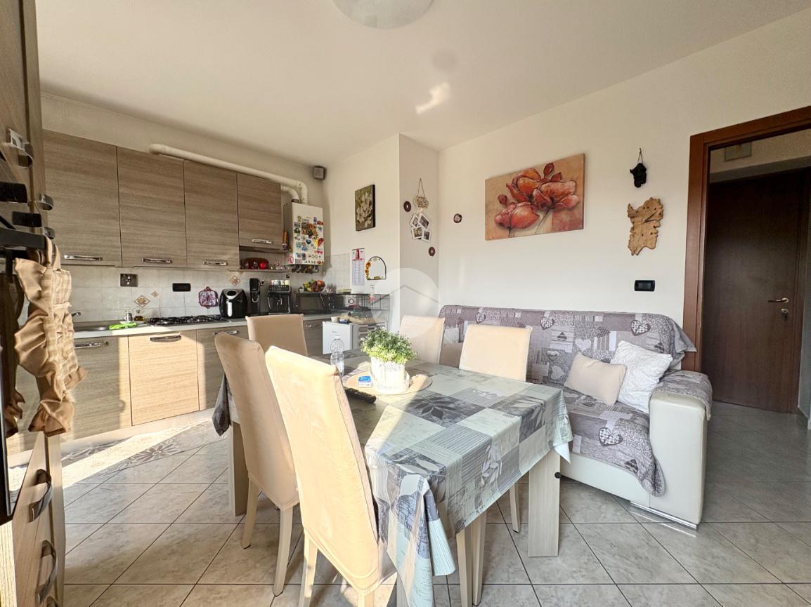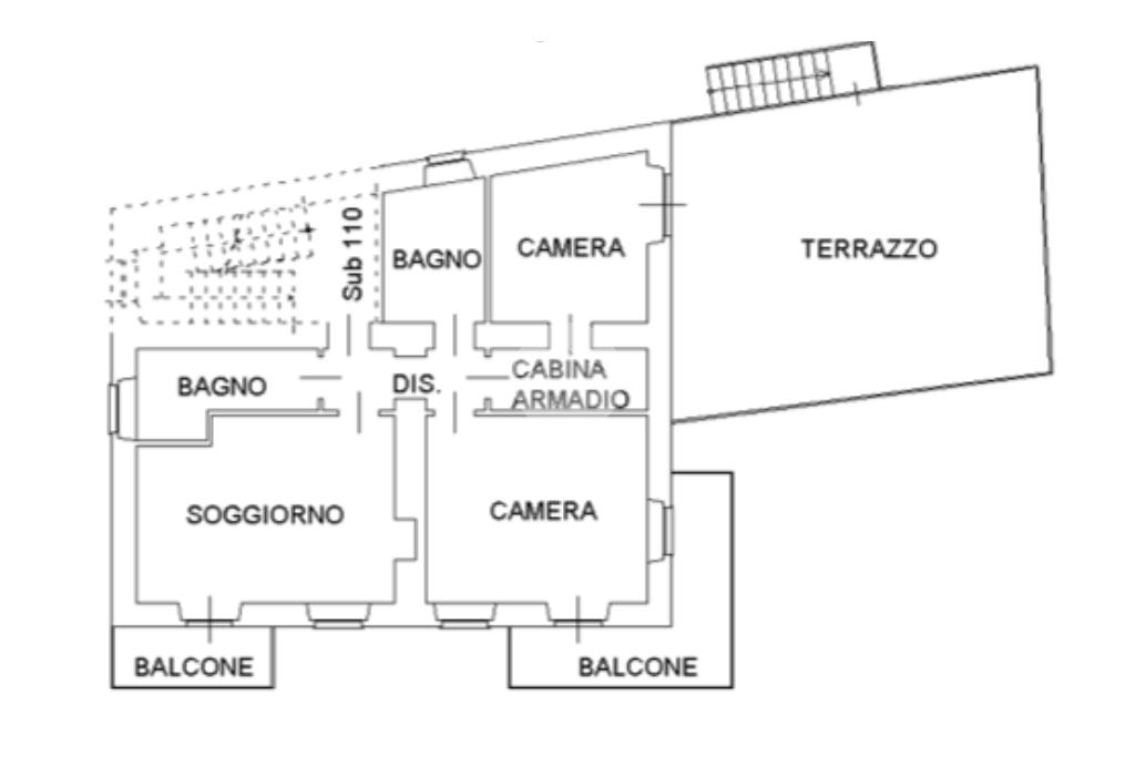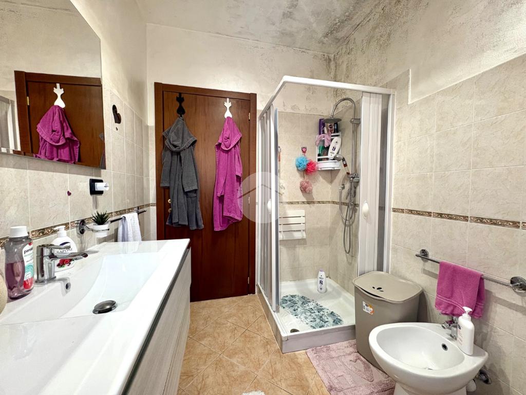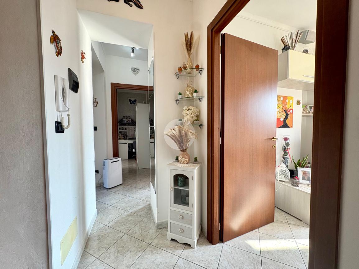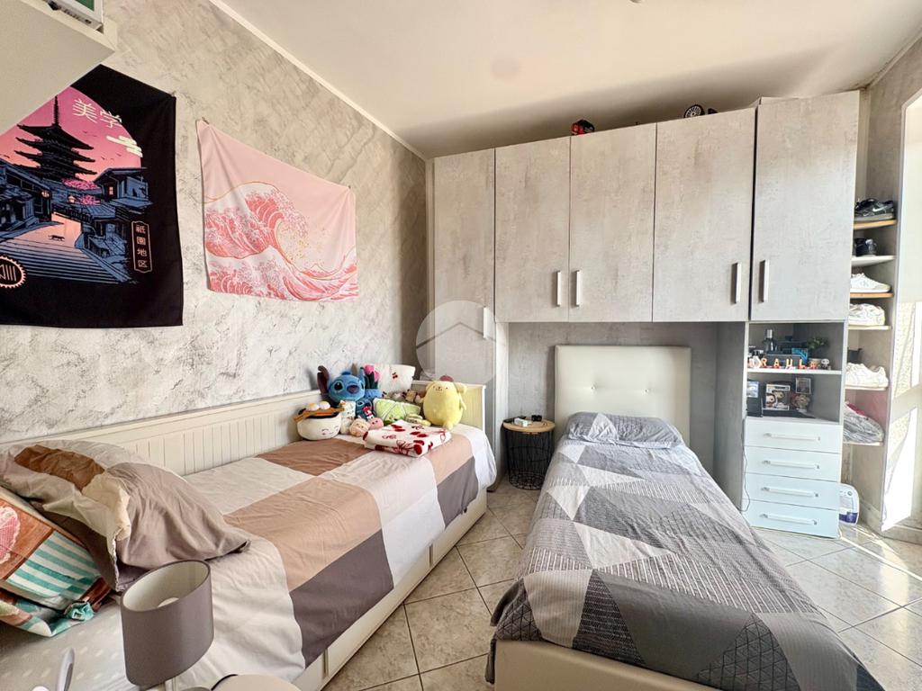 L'immobile, sviluppato su un unico livello abitativo, presenta l'ingresso su disimpegno, soggiorno con cucina a vista con sfogo sul balcone e bagno finestrato attualmente adibito a lavanderia. Tramite disimpegno si accede alla zona notte, composta da un secondo bagno finestrato dotato di box doccia, da un'ampia camera matrimoniale e da una cameretta, rispettivamente con accesso al balcone e al terrazzo, ideale per momenti di relax all'aperto.