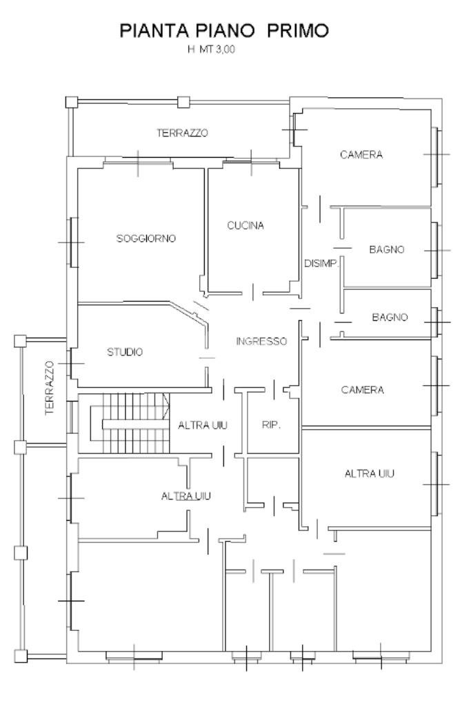 L'immobile, sito al primo piano e caratterizzato da spazi ampi e ben distribuiti, presenta l'ingresso su un comodo disimpegno che conduce al luminoso soggiorno ed alla cucina abitabile, entrambi con accesso diretto al terrazzo, ideale per momenti di relax all'aperto. La zona notte è composta da due camere matrimoniali e da due bagni finestrati che garantiscono comfort e funzionalità. Completano la proprietà un pratico ripostiglio e uno studio con accesso al secondo terrazzo, perfetto come spazio di lavoro, area hoppy o terza camera.